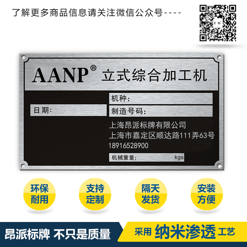 金屬鋁牌銘牌標牌 時間:2018-05-12 16:12:54 分類:金屬銘牌 瀏覽:次 標牌、銘牌、鋁牌用途以及特色,耐候性低、抗惡劣天氣,不受臭氧、空氣污染、酸雨侵襲;耐紫外線、抗紫外線、抗粉化;耐化學(xué)品性、抗酸堿侵蝕;耐腐蝕性,氧化潮氣鹽份滲透率低;防霉菌污損耐濕性優(yōu),并能保持光潔,易于保養(yǎng)清洗,不易變色、褪色、爆裂、粉化等! 分享收藏: 上一個: 機械參數(shù)牌銘牌標牌 下一個: 固定資產(chǎn)銘牌標牌 相關(guān)產(chǎn)品 特種設(shè)備陽極氧化鋁銘牌標牌 陽極氧化指示小銘牌標牌 自動化設(shè)備鋁銘牌標牌 設(shè)備信息陽極氧化銘牌標牌 汽車零配件鋁銘牌標牌 產(chǎn)線標識鋁銘牌標牌