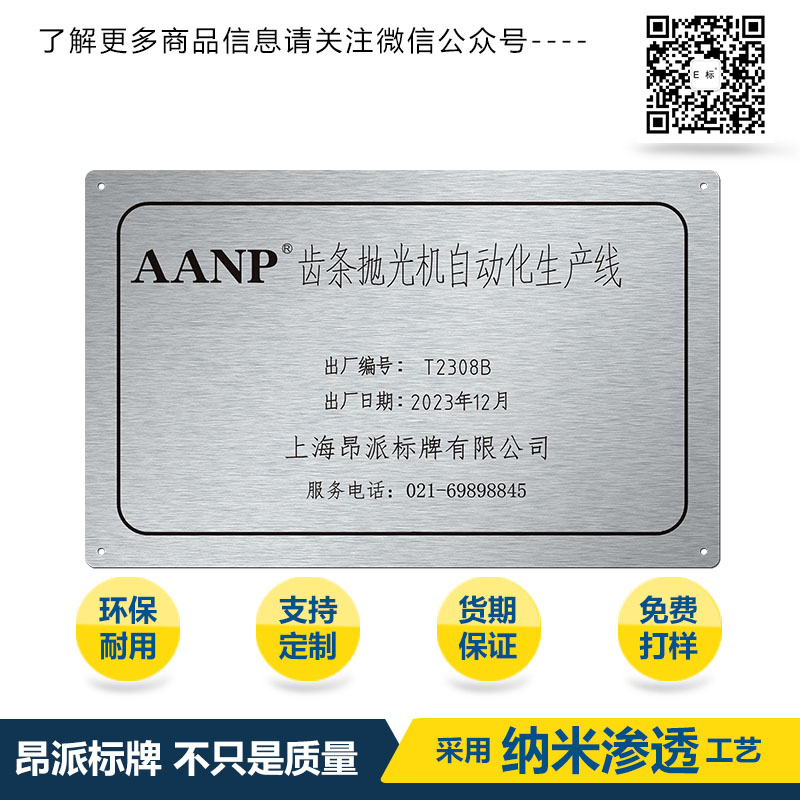 產(chǎn)流程通過了ISO9001質(zhì)量體系。昂派標牌貫徹以顧客的需求優(yōu)先,在標牌產(chǎn)品的質(zhì)量上嚴格把關(guān),努力成為一個